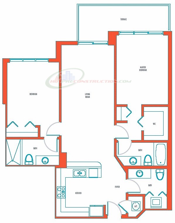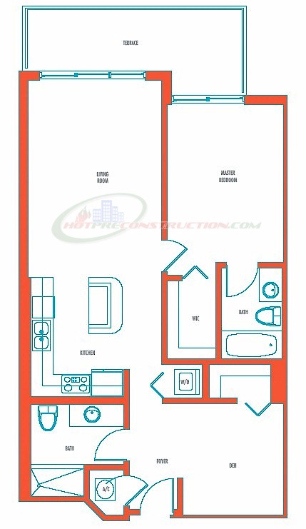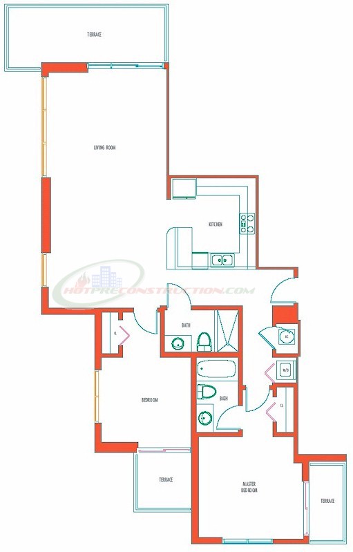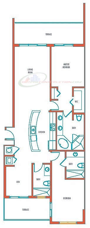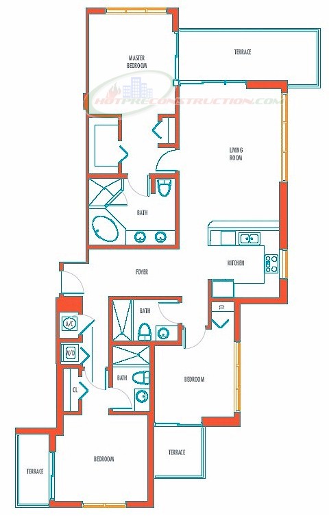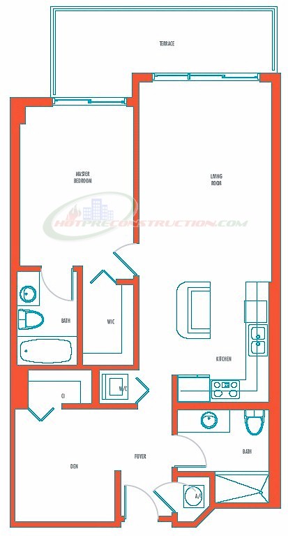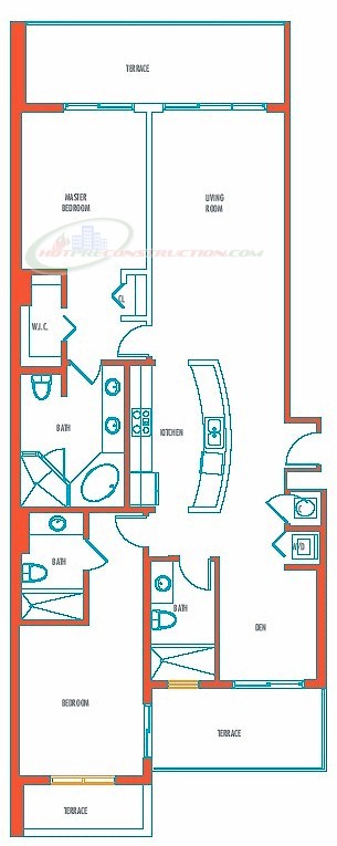 Luxurious in design, with private wrap-around terraces, residences are spacious and elegant. Gourmet-style kitchens feature European-designed cabinetry in warm woods mixed with sleek lacquer. Other kitchen appointments include granite counter-tops featuring glass-tiled backsplashes and contemporary stainless steel appliances. Contemporary clean lines define the glorious master baths, which feature whirlpool tubs and rain-style shower fixtures, plus marble and limestone finishes.